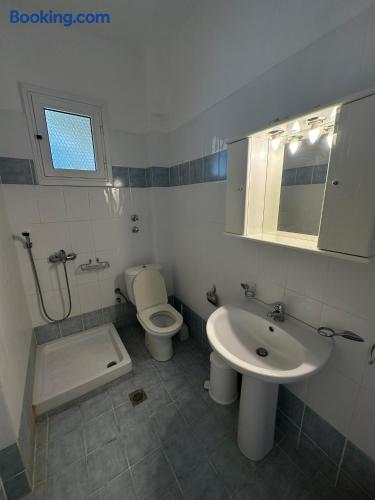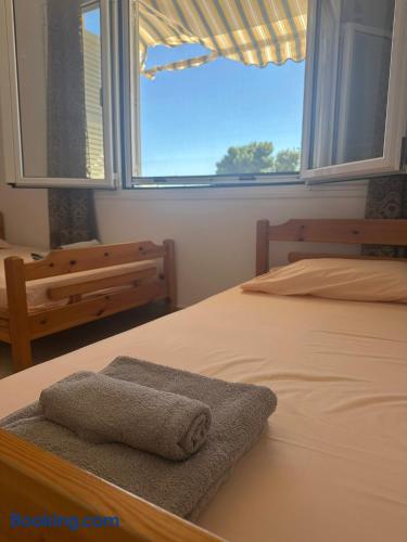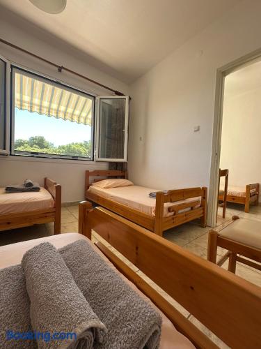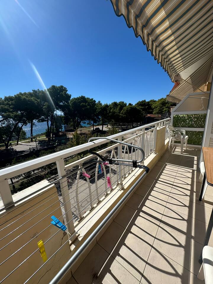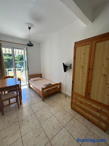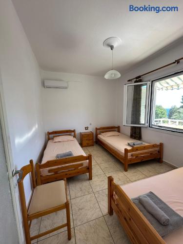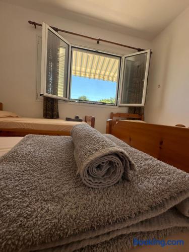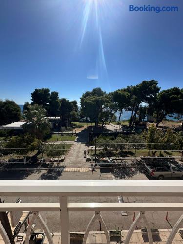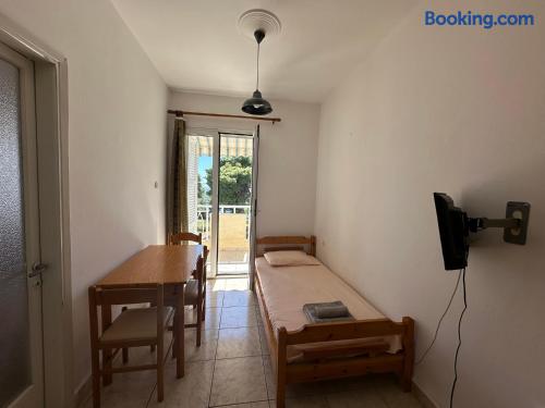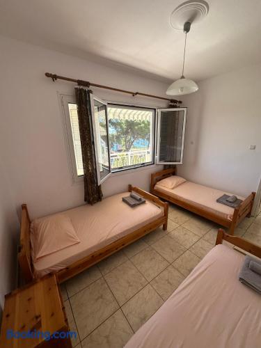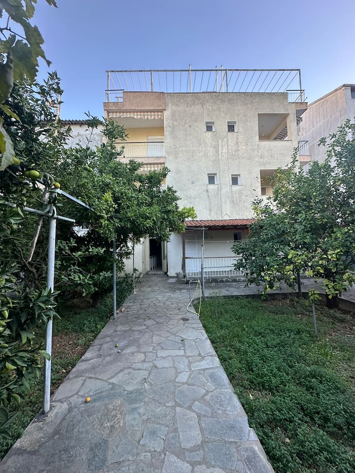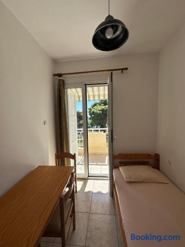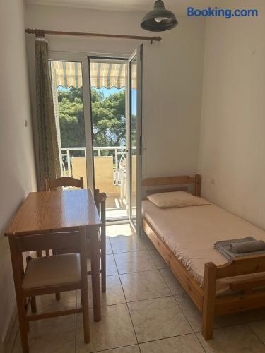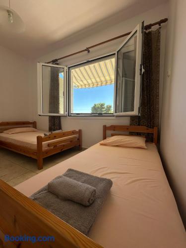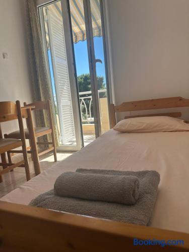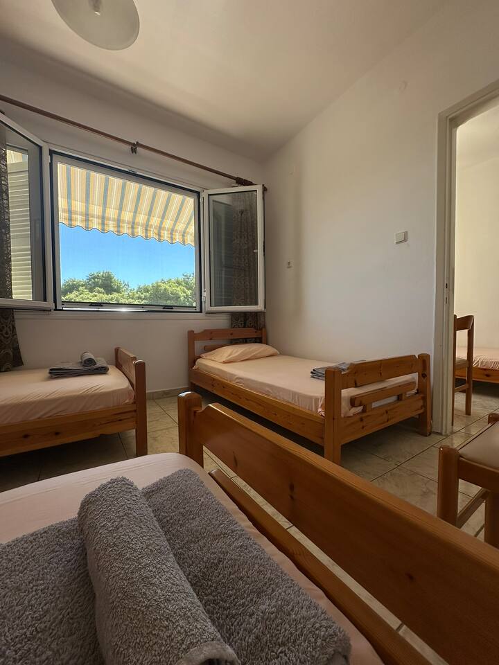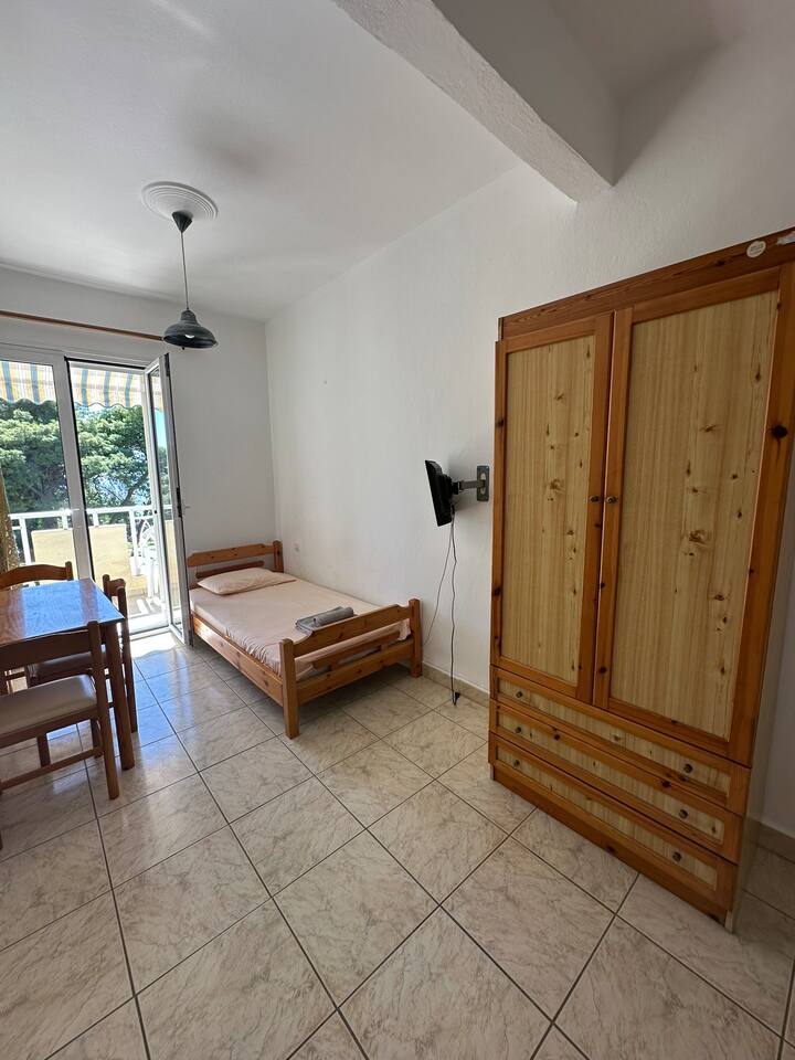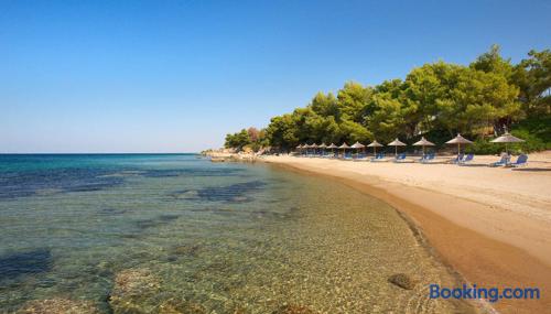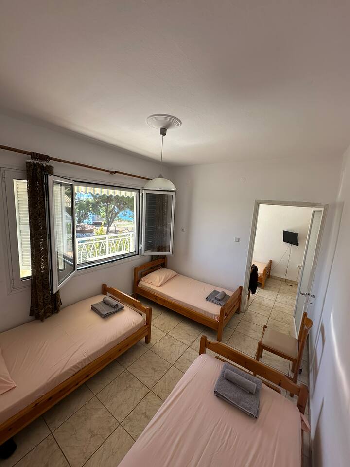 The accommodation is located in a unique place in the most central part of the village overlooking the sea. It is about 40m2 and is suitable for hosting 5 people. Also, the village is located at a distance of 5km from Nikiti and you can distinguish it for its beauty as well as its tranquility. From the apartment the access to the sea is at 50 meters as there are two supermarkets at 30 meters. There is a free parking behind the apparts and a park in front of it